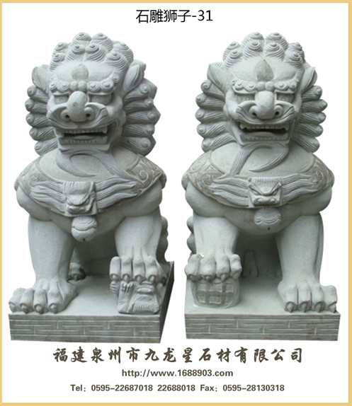 就是用石頭雕刻出來的獅子,是在中國傳統(tǒng)建筑中經(jīng)常使用的一種裝飾物。在中國的宮殿,寺廟,佛塔,橋梁,府邸,園林,陵墓,以及印鈕上都會看到它。但是更多的時候,“石獅”是專門指放在大門左右兩側(cè)的一對獅子。石獅不僅有不同的時代特點,還有明顯的地域特色。總體上,北方的石獅子外觀大氣,雕琢質(zhì)樸;南方的石獅更為靈氣,造型活潑,雕飾繁多,小獅子也不僅在母獅手掌下,有的爬上獅背,活潑可愛。
