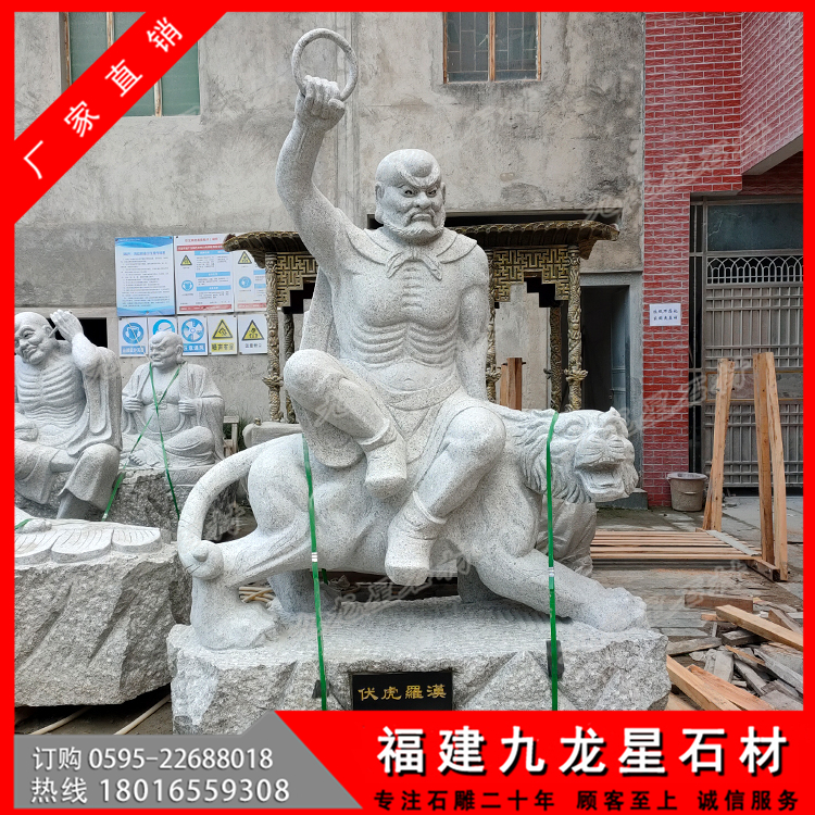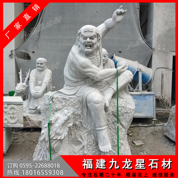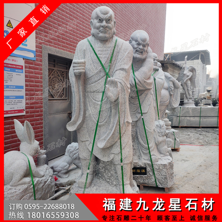 看著每一尊寺院十八羅漢石像,不得不感嘆古人的智慧啊。這些被珍藏的十八羅漢塑像,保存的如此完好,這還是要?dú)w功于,十八羅漢塑像是采用的天然石材手工雕刻而成,純天然的石頭在大自然中被人們開(kāi)鑿來(lái)制作成十八羅漢石像作品,這樣的一整套十八羅漢作品,不僅帶著天地精華,也將人們的智慧和工藝賦予其中,石刻十八羅漢就是最好的安排了吧。古代十八羅漢帶有歷史沉淀的韻味,具有很高的研究?jī)r(jià)值。而現(xiàn)代十八羅漢雕刻為了能有這樣的一份感情,開(kāi)始了對(duì)石雕18羅漢仿古做舊的技術(shù),也更符合一些古建筑,古剎寺院去擺放仿古代石雕十八羅漢擺件。