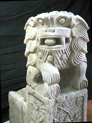 漢白玉獅子門墩是最高級的一種,它象征著權(quán)勢與地位,它顯得威嚴(yán)、神秘,好像在提醒世人,這是高貴府地,凡人不得隨便進出。這種獅子式門墩的使用在過去有嚴(yán)格的規(guī)定。只有王府、貝勒府和皇親國戚的府地才能使用這種門墩,旁人一概不得使用。通常是雄獅居左,右爪下踩著繡球,被稱為“獅子滾繡球”;雌獅居右,左爪下是一只幼獅,叫做“少師少帥”,意思是子嗣昌盛,世代高官。