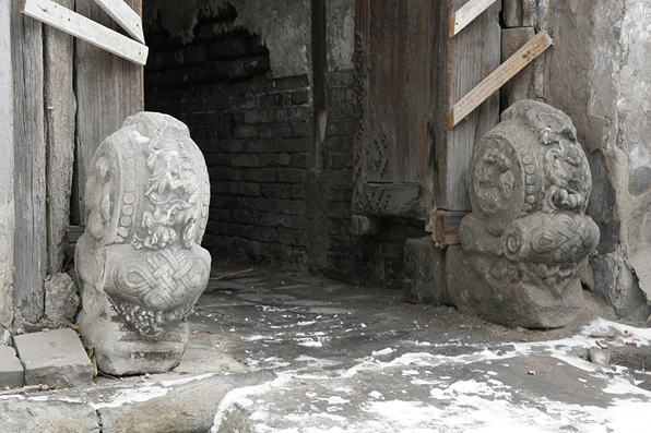 方形箱式門墩是過去文官府邸的標(biāo)志。這種門墩是讀書人的偏愛,因為它象征著讀書人放書的箱子。門墩上也經(jīng)常雕有小獅子和氣林。