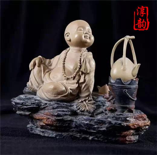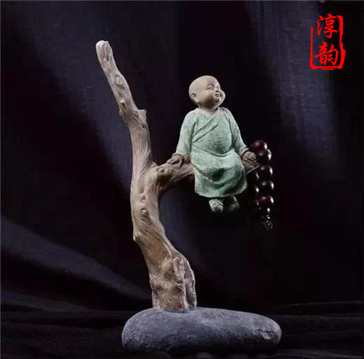 這組表情豐富、形態(tài)各異又頗有些禪意的小沙彌由鐵丸石精心雕琢而成。