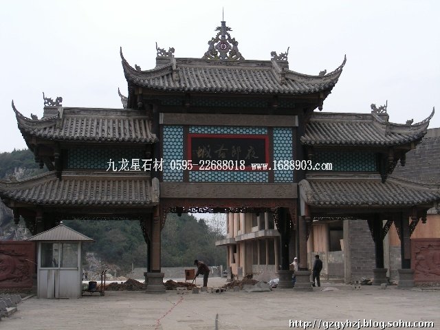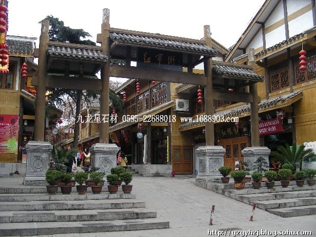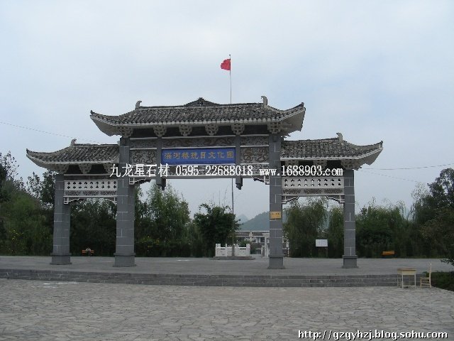 其實,在我看來,而現(xiàn)在新建的牌坊,構建意圖已經遠遠離開了被打上封建主義的那些色彩烙印。在用意上已經擴展了它的內涵,使其外延更為豐富和更具觀賞性。如地名、旅游點、廟宇、山門等以牌坊作為門頭等標志性建筑物,用來標明地名,宣傳文化的建筑物。那些刻寫在牌坊上面的楹聯(lián)文字,雖片言只語,卻道出了一些人生哲理與敘事抒情趣事趣聞,可謂深淺皆成趣,雅俗均共賞。
