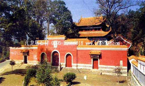 炎帝陵位于陜西省寶雞市渭濱區(qū)神農(nóng)鄉(xiāng)常羊山上,史傳神農(nóng)炎帝生于姜水九龍泉,舊時(shí)寶雞境內(nèi)天臺山與姜水畔目口建有規(guī)模巨大的神農(nóng)廟、炎帝殿待,后均毀圮。?993年于此重建炎帝陵寢,以常羊山為主體,三面臨空,氣勢磅礴,分為陵前區(qū)、祭祀?yún)^(qū)、墓冢區(qū)三部分,總面積3300平方米。陵前區(qū)包括十里神道和九龍泉遺址;祭祀?yún)^(qū)設(shè)拜炎閣及祭祀廣場;墓冢區(qū)在常羊山中峰頂,四周植松柏,樹碑林。