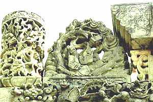 這是牌坊上的雙面透雕的背面--“杜甫吟詩”