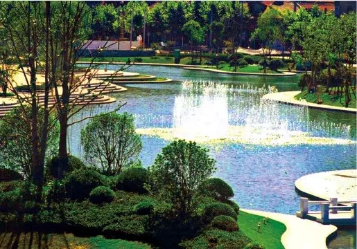 4.人工湖設(shè)計需要充分考慮水生植物及岸坡植物的合理配置與周邊的自然環(huán)境有機(jī)結(jié)合。對于要求較高的項目,還要配置燈帶及水底燈照明,以增強(qiáng)夜間景觀效果。