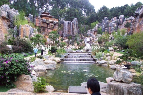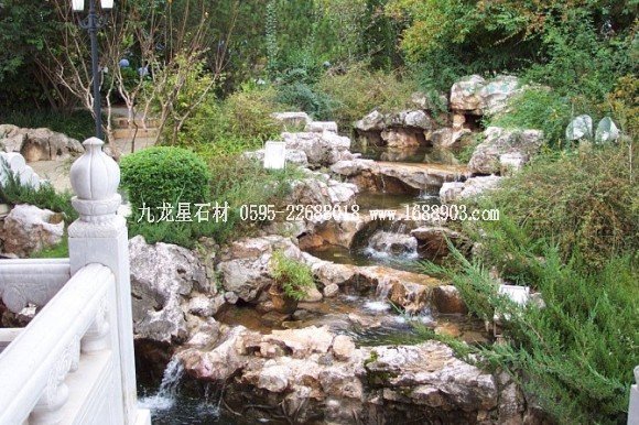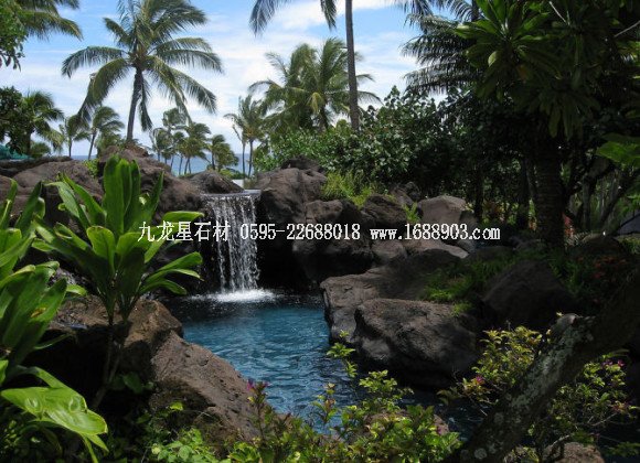 中國(guó)式的山石瀑布,一般瀑布口1~3米寬,可以用一塊仔細(xì)打磨的石板、砼板作溢水口。務(wù)必使溢水口融為山石的一部分,流瀑時(shí)好看,不流時(shí)也自然。在上海嚴(yán)寒的冬天,如果這里有少量滴水,那么隨著時(shí)間推移會(huì)滴水成冰,冰柱會(huì)越來(lái)越長(zhǎng)。這也是園林景觀的一種冬態(tài)。