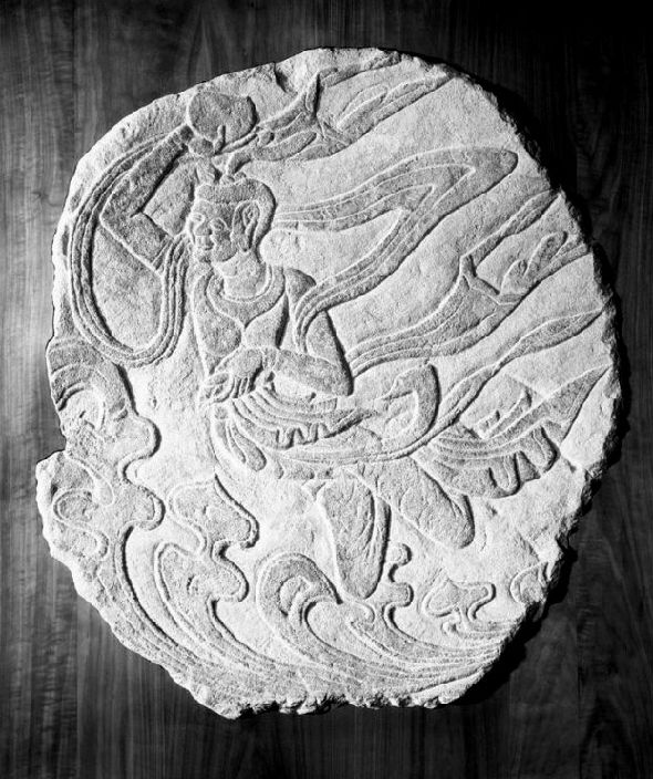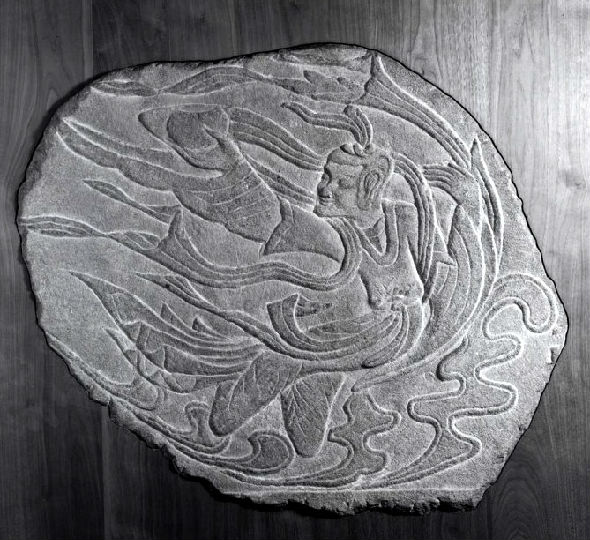 山西天龍山第3窟東魏浮雕持缽飛天,尺寸:91.4x81.1cm。