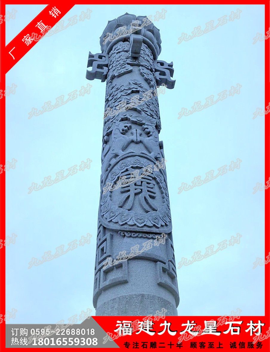我國的廣場景觀文化柱子石雕除了具有圖騰性質(zhì)和紀念性的華表、墓表之外還有許多寺廟中宣揚宗教教義、經(jīng)文的文化柱,到了近現(xiàn)代文化柱除了紀念性之外更多的作為宣傳歷史文化、民族文化、傳統(tǒng)文化等的載體而出現(xiàn)。比如曾作為2009年中華人民共和國建國60周年國慶的慶典背景之一的民族團結(jié)柱就是紀念性和文化性的綜合體。它們的紀念性體現(xiàn)在:民族團結(jié)柱共五十六根,象征五十六個民族,整體色調(diào)為中國紅和金黃色,柱頭柱礎(chǔ)為蓮花紋飾和卷草紋的結(jié)合與人民大會堂的門柱圖案元素一致,相互呼應(yīng)。寓意56個民族團結(jié)在黨中央周圍,建立民主政權(quán),共同享有民主權(quán)利,柱身為各民族吉祥紋樣以及載歌載舞的場景,體現(xiàn)人民歡慶建國60周年的喜悅之情。他們的文化性體現(xiàn)在:每根文化柱上都雕刻著一個民族的文化符號,包含每個民族特有的文化元素和文化符號,很好的展現(xiàn)了每個民族的文化特色。