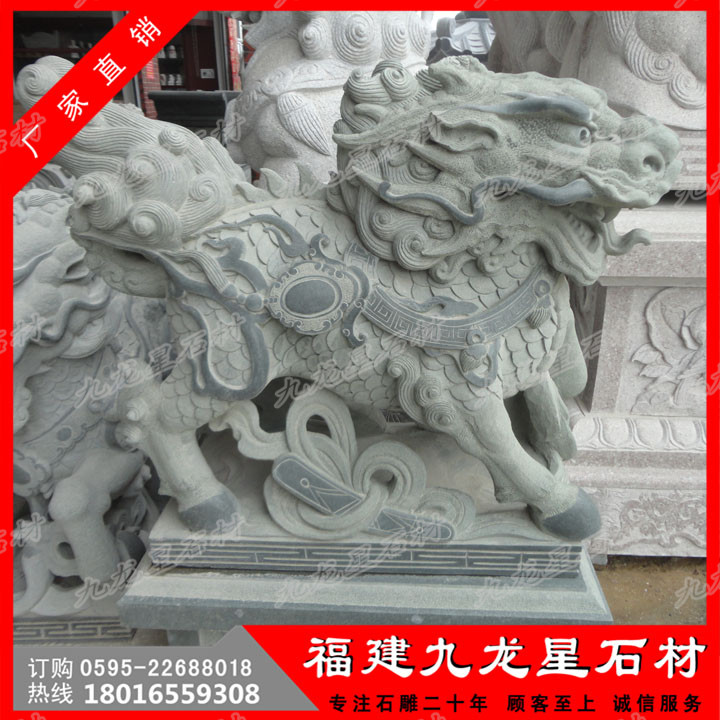 石刻麒麟是中國傳統(tǒng)工藝品之一。民間認為麒麟有鎮(zhèn)宅辟邪,增添家中吉祥的作用。石刻麒麟是古代的仁獸,集龍頭、鹿角、獅眼、虎背、熊腰、蛇鱗、馬蹄、豬尾于一身,乃吉祥之寶,從古到今都是公堂上的裝飾,以振官威之用,也是權(quán)貴的象征。 福建惠安有著極為豐富的石材資源,用**天青墨玉、霞玉、緬甸玉、漢白玉、墨玉、佘太玉、砂巖、大理石、花崗石、銀灰白石、雪花白等石材玉料雕刻石刻麒麟。
