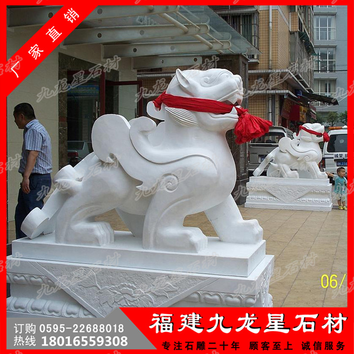 銀行門口石貔貅是指用優(yōu)質(zhì)天青墨玉、霞玉、緬甸玉、漢白玉、墨玉、佘太玉、砂巖、大理石、花崗石、銀灰白石、雪花白等石材玉料,雕刻成各類藝術(shù)用品和擺件的貔貅。一般采用圓雕,透雕,線雕,平雕,浮雕,畫雕,影雕等多種工藝雕刻。