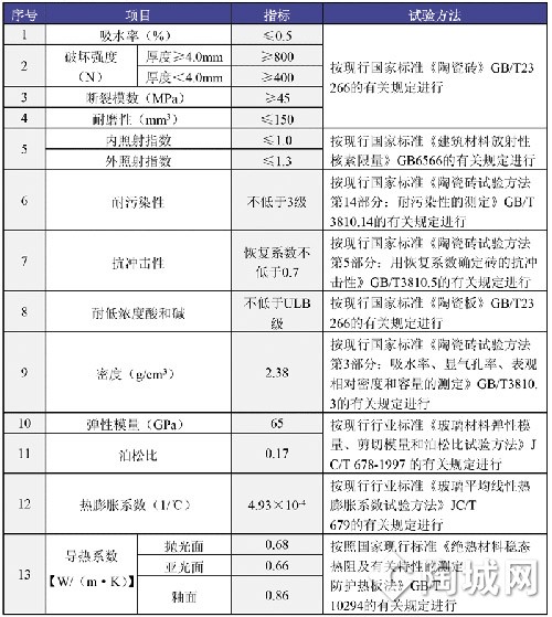 表2 建筑陶瓷薄板的性能指標