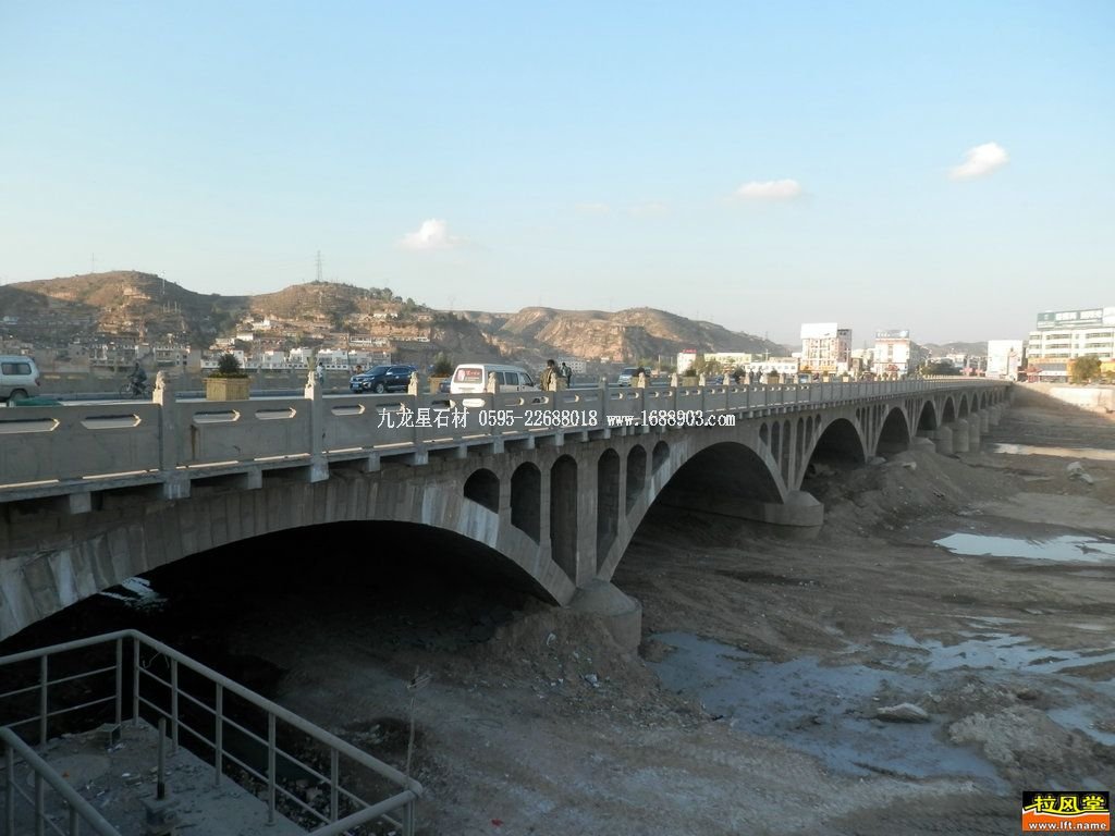 1987年,這座凝聚了綏德人智慧的千獅橋終于竣工了。馬金龍說,這座橋在綏德筑橋史上創(chuàng)造了許多之最,工程難度最大,橋身最長(zhǎng)(311米),橋面最寬(10米加2×2米人行道),橋身最雄偉(13孔橋洞跨徑20米),用人最多(上萬人參加了修建),石獅子最多,投資最多(200多萬元),價(jià)值最大,建成后的綏德千獅橋北達(dá)包頭,南通西安,東串太遠(yuǎn),西連銀川。馬金龍還說,千獅橋之所以成了聞名遐邇的石雕藝術(shù)大橋,是因?yàn)樗娜齻€(gè)特點(diǎn),一是橋身傾斜20度;二是空腹聯(lián)合石拱,即大拱肩上有小拱;三是南丁字路口有1座功德碑,北丁字路口有1座抗金民族英雄韓世忠大雕像,橋上有4座古色古香的涼亭,4根凜凜的龍柱,60塊精美的浮雕,更令人驚嘆不已的是橋上雕刻著1008只石獅子,成了天下第一獅橋。