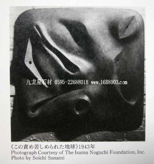 1996年3月我在東京第二次看野口勇雕刻展覽,盡管那時(shí)我已經(jīng)認(rèn)識(shí)到他是一位重要的雕刻家,但是對野口勇的認(rèn)識(shí)還是相當(dāng)模糊,然而兩個(gè)月之后,在看"野口勇和路易·康(Louis Kahn)"展覽時(shí),一件1943年創(chuàng)作的黑色銅雕"被蹂躪的地球"讓我覺醒,這件作品讓我生出想去撫摸的感覺,(在這里說可能不太文雅,但是我必須誠實(shí)地講出來才有說服力,那就是我看美術(shù)館中無人,就閉著眼睛去“撫摸”這件雕刻,那時(shí)通過手傳達(dá)給我就象在撫摸戀人身體的感覺)這是野口勇雕刻的官能性對我的誘惑。野口勇的雕刻從日本和中國的傳統(tǒng)文化的空間美學(xué)中獲得啟示,同時(shí)還通過東方書法和日本陶藝讓我們獲得對身體的感受。