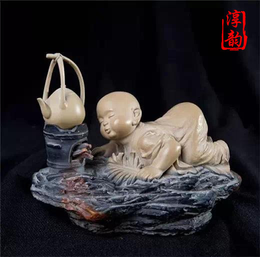 這組表情豐富、形態(tài)各異又頗有些禪意的小沙彌由鐵丸石精心雕琢而成。