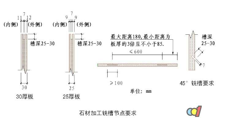 (6)石材短槽必須機(jī)械開(kāi)槽,保證槽縫寬度符合設(shè)計(jì)要求,嚴(yán)禁現(xiàn)場(chǎng)手提切割機(jī)開(kāi)槽。