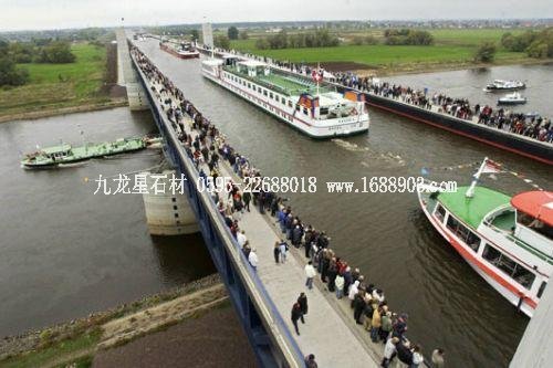 橋不僅用于居民行走,甚至還可以行船運(yùn)輸,這就是德國巨大的馬格德堡水橋,它位于易北河-哈弗爾河和米特蘭爾運(yùn)河之間。這座1公里長的橋中橋是于2003年開通投入使用的。共用了6年時間進(jìn)行建造,花費(fèi)了5億歐元。