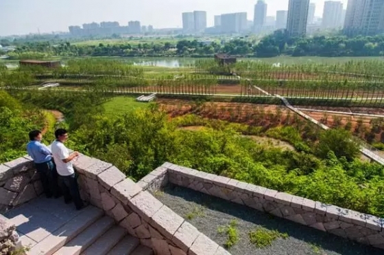 土人設(shè)計(jì)(Turenscape)在衢州鹿鳴公園項(xiàng)目中運(yùn)用了三大理念:最少干預(yù)、都市農(nóng)業(yè)的豐產(chǎn)景觀及水適應(yīng)性。不同的季節(jié),公園都是一片花的海洋,有向日葵、油菜花等等,形成既豐產(chǎn)而又美麗的植被基底。此外,設(shè)計(jì)中也充分尊重原有的鄉(xiāng)土文化遺產(chǎn),還有一套完整的環(huán)境解說(shuō)系統(tǒng)講述場(chǎng)地的自然與人文的歷史故事。公園建成開(kāi)放后,受到市民廣泛喜愛(ài),成為衢州的新名片。