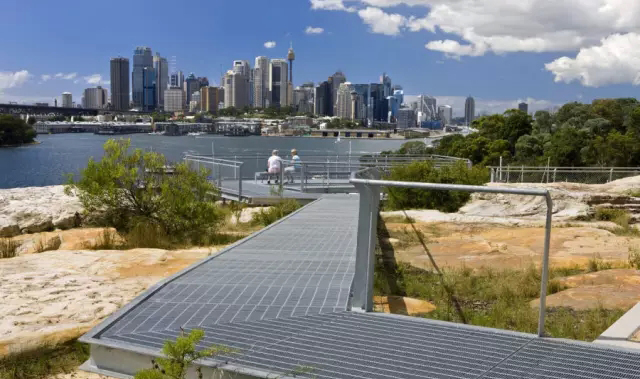 場地作為油庫使用長達60多年,已經(jīng)不可避免地受到污染.BP公司的這塊場地一度容納了辦公區(qū)和31座儲油罐,巨大的弧形混凝土墻用以防止原油泄露污染海港。新的設(shè)計保留了場地的工業(yè)遺跡和海港特征,表現(xiàn)為連續(xù)的開放空間和大片的濕地,壯觀的觀景平臺懸踞在高高的半圓形砂巖懸切面上,這里曾經(jīng)矗立著巨大的儲油罐?;炷梁徒饘匐A梯將各個空間連接起來,方便游人欣賞岸邊的親水性野生生態(tài)系統(tǒng)。