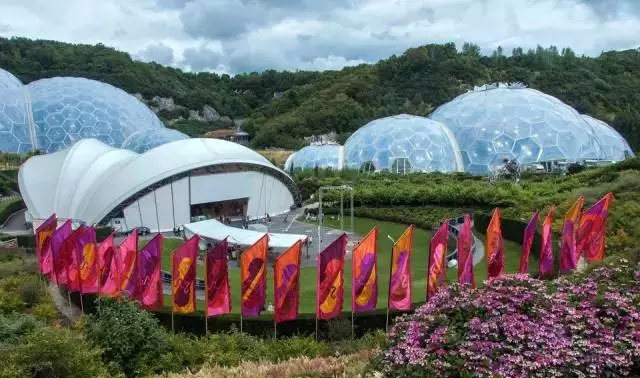 “伊甸園”由4座穹頂狀建筑連接組成,穹隆架是鋼管構(gòu)成的一個個六角型,上面覆蓋著由輕型材料制成的透明蓋板。這種材料的重量只有玻璃的百分之一,并具有良好的保溫性?!耙恋閳@”是一座巨大的植物園,里面容納了來自世界各地的數(shù)萬種植物,其宗旨是展示植物與人類的關(guān)系以及人類如何依靠植物進行可持續(xù)發(fā)展,被譽為“通往植物與人類世界的大門”。