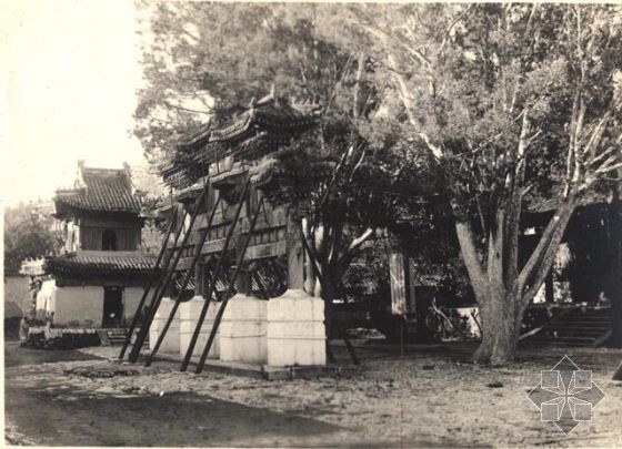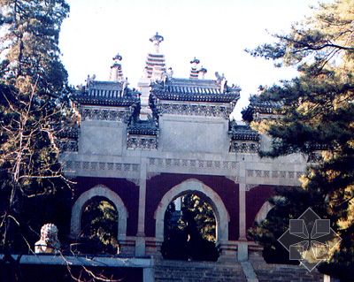 乾隆十三年(1748年)進(jìn)行了大規(guī)模的修建,并仿五塔寺而建石雕金剛寶座塔。同時(shí)新建木、石、磚三聯(lián)牌樓。其中石牌樓最為精致,雕刻極細(xì),是典型的清代風(fēng)格。北京的磚牌樓只有碧云寺這一例.碧云寺磚牌樓,從其形制看,其仍屬于琉璃牌樓一類.碧云寺石坊為四柱三間沖天柱式,兩側(cè)共有四座石雕影壁屏風(fēng),它該算是北京影壁最多的牌樓.