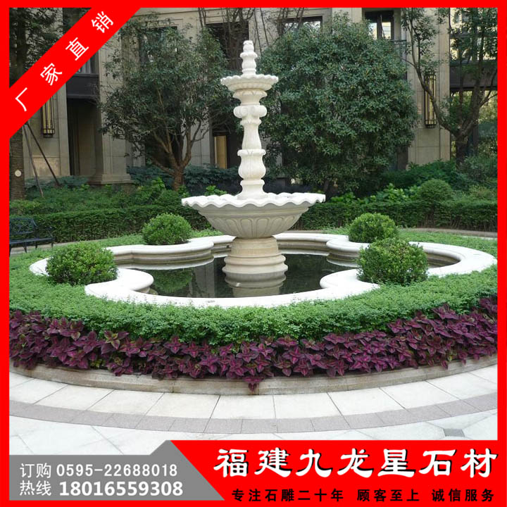 水景形態(tài)有靜水、流水、落水、噴水等幾種這幾種形態(tài)又可衍生出多姿多彩的變化形式,特別是由于噴頭技術(shù)的發(fā)展 ,噴水姿態(tài)更是變化萬千。有了這些素材,再通過專業(yè)人員的藝術(shù)設(shè)計,即可以勾畫出優(yōu)美的水藝景觀。另外,不同的景觀形式適合不同的應用場景。比如音樂噴泉一般適用廣場等集會場所。它是以音樂、水形、燈光的有機組合來給人以視覺和聽覺上的美感;同時噴泉與廣場又融為一體,形成了建筑的一部分。而住宅區(qū)的樓宇間更適合設(shè)計溪流環(huán)繞,以體現(xiàn)靜謐悠然的氛圍,給人以平緩、松馳的視覺享受,從而營造宜人的生活休息空間。此外,石雕噴泉的加工石材也是非常的多樣,其中最常見的有漢白玉、黃銹石、黃金麻、大理石、花崗巖等,這樣也使得噴泉的顏色更加廣泛。這樣我們可以根據(jù)園林建設(shè)及小區(qū)別墅整體設(shè)計的效果,來決定使用哪類色調(diào)的石材來制作石雕噴泉以及在園林建設(shè)中的應用最為合適。