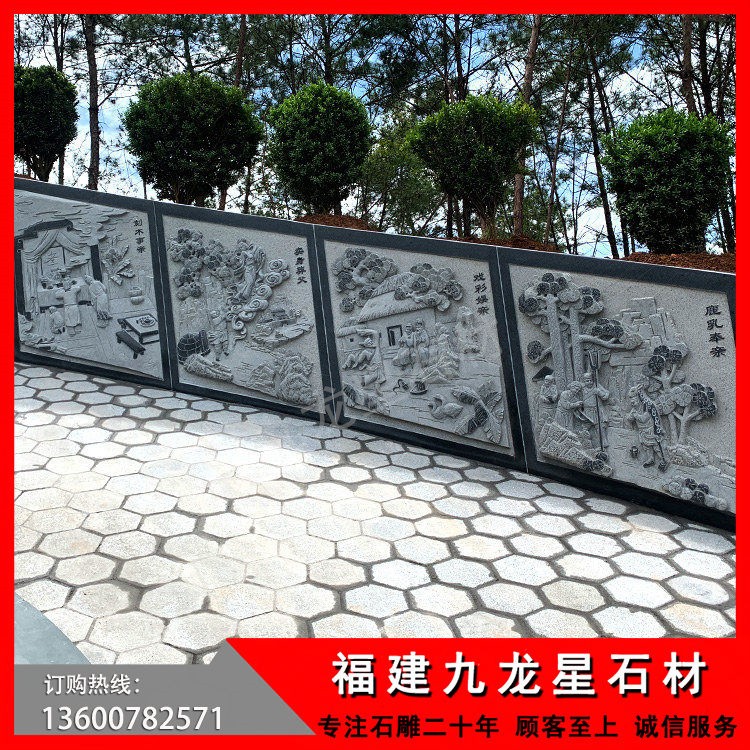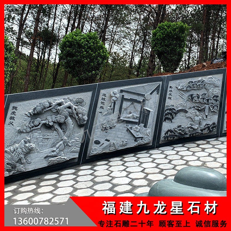 本公司做為此項目的承接方,從設(shè)計、雕刻、運(yùn)輸、安裝施工一站式服務(wù),包含了涼亭、二十四孝浮雕,墓碑等整個工程。本套墓圍采用的優(yōu)質(zhì)的G654+青石,整個工程耗時三個多月,靠著過硬的產(chǎn)品質(zhì)量、細(xì)致的服務(wù)如期完成整套項目,深得客戶好評。