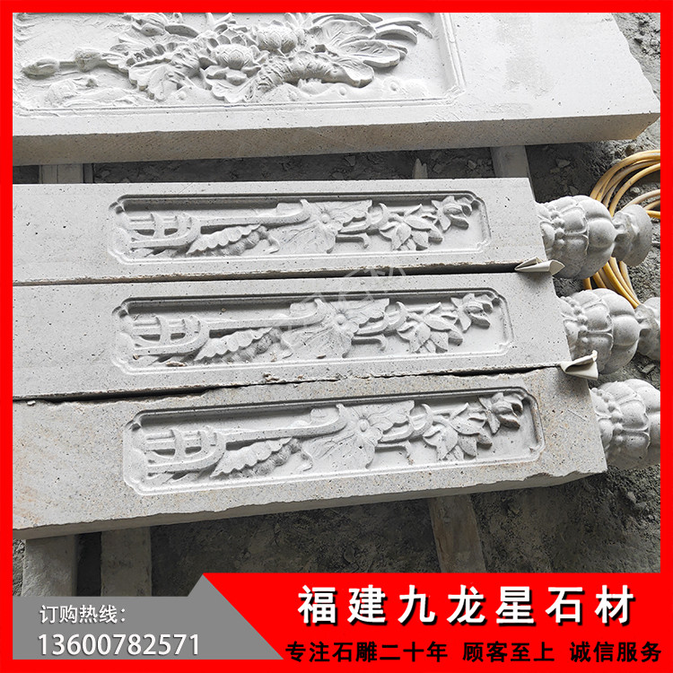 加工要求:欄板雙面雕刻3公分,柱子2公分左右,欄桿全部打龍巖面