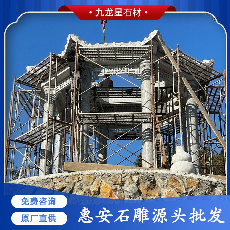 石雕涼亭的作用不僅可以作為休息點、休息區(qū),其實也是景點或者山間的一個標志性建筑,美觀又不容易損壞,抗壓性強。今天主要帶給大家的是我們近期的案例——雙層惠安灰八角涼亭。