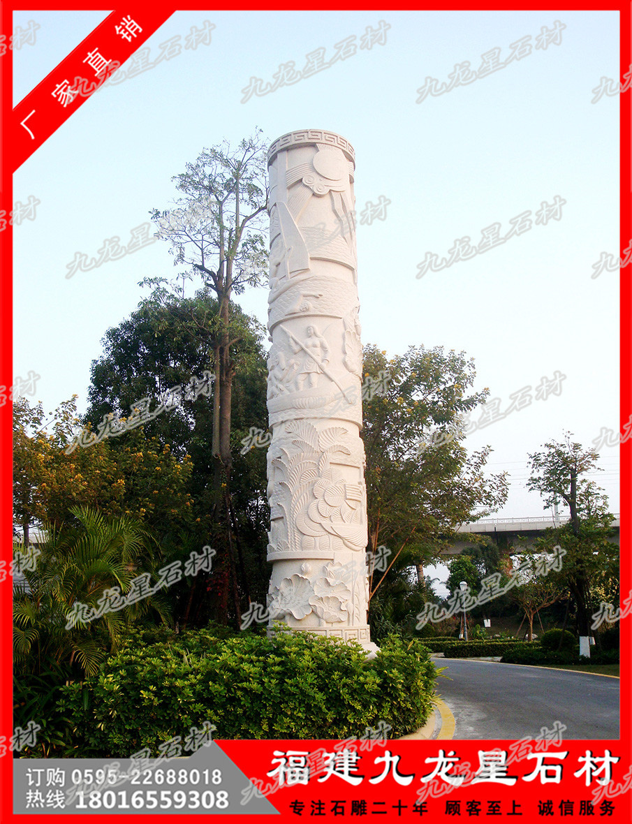 廣場景觀文化柱子石雕也被稱為石雕圖騰柱或者文化景觀柱以及石頭文化柱等,當廣場景觀文化柱子石雕以單體形式出現(xiàn)時一般是作為城市廣場的主雕而放置在廣場的視覺中心位置,尺度高大醒目,空間領(lǐng)域覆蓋整個廣場。在多個廣場景觀文化柱子石雕柱體排列時,直線排列的布局形式一般起到提示、分割、限定空間的作用。遠視的效果會給人感覺廣場景觀文化柱子石雕之間的虛空間像一道透明的屏障,即分隔開公共空間與外部空間又形成一個開放的大門,透過它可以清晰地看到后面的景觀。半圓弧排列的布局一般是廣場景觀文化柱子石雕和主雕結(jié)合的方式,主雕和廣場景觀文化柱子石雕形成一個扇形空間,兩者之間相互呼應(yīng)形成一個整體的空間領(lǐng)域,統(tǒng)領(lǐng)整個廣場。