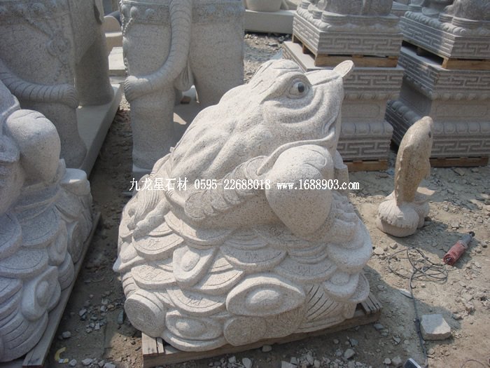 石雕三足金蟾采用整塊漳浦銹花崗巖雕刻而成,凈高約0.55米。